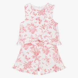 Pale blue and white shorts set for little boys by Tartine et Chocolat. Suitable for the warmer months, this outfit set is made from linen fabric for comfort and lightness. The short-sleeved shirt has a neat collar and subtle logo embroidery on the chest. Paired shorts have slanted front pockets and an adjustable waistband for a good fit.