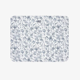 Lovely blanket for baby girls by Tartine et Chocolat. Made in softly ribbed cotton, the front is patterned with a pretty pink and green floral print on an ivory background, with a pink embroidered logo at the top. The plain pale pink reverse is made in soft cotton jersey. Warmly padded, this cosy blanket is ideal for use in the nursery and as a soft surface for baby to lie on.