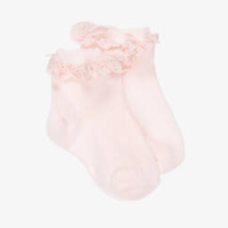 Girls Pink Cotton Socks with Lacy Ruffles