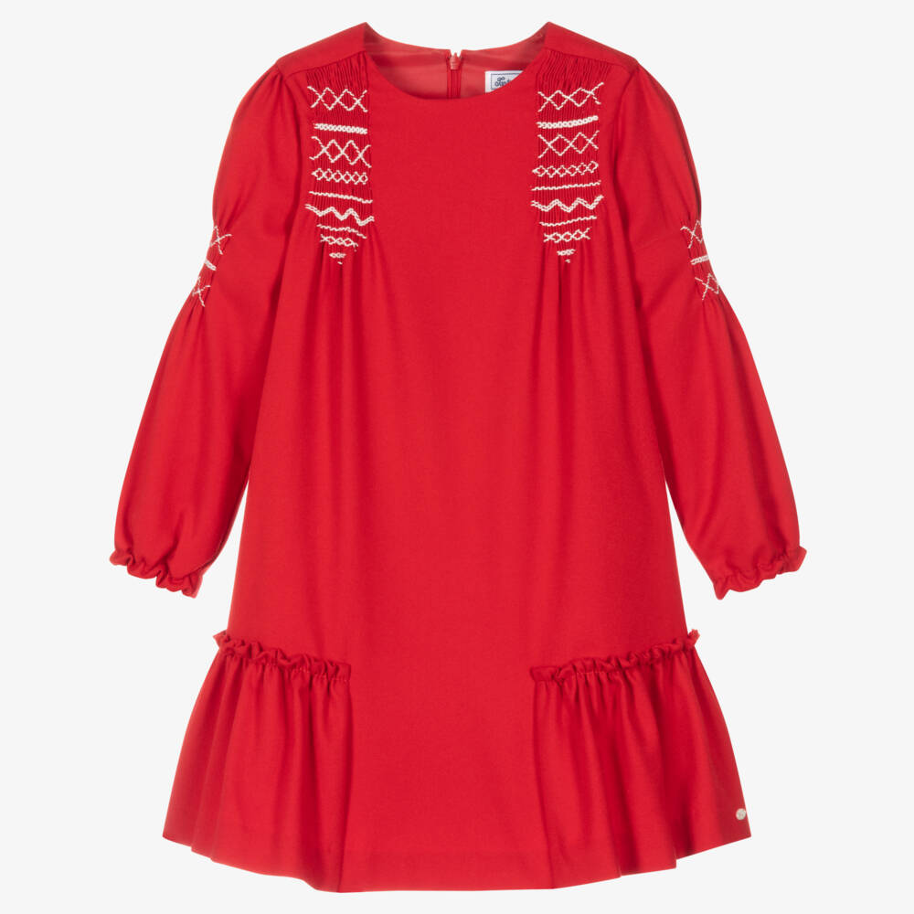 Gorgeous red dress for girls by French designer Tartine et Chocolat, trimmed with delicate smocking for a traditional feel. Simple and timeless, it has a dropped waist and puffed sleeves. Lined for comfort, it fastens effortlessly with a concealed zip on the back.