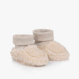 Adorable ivory booties for baby boys and girls from Tartine et Chocolat, knitted in super soft wool with a touch of luxurious cashmere. Cosy and warm on little feet, these sweet booties have cute 3D bunny ears and fold-over ribbed cuffs. For designer appeal, there is a pearlescent logo charm stitched on one side.