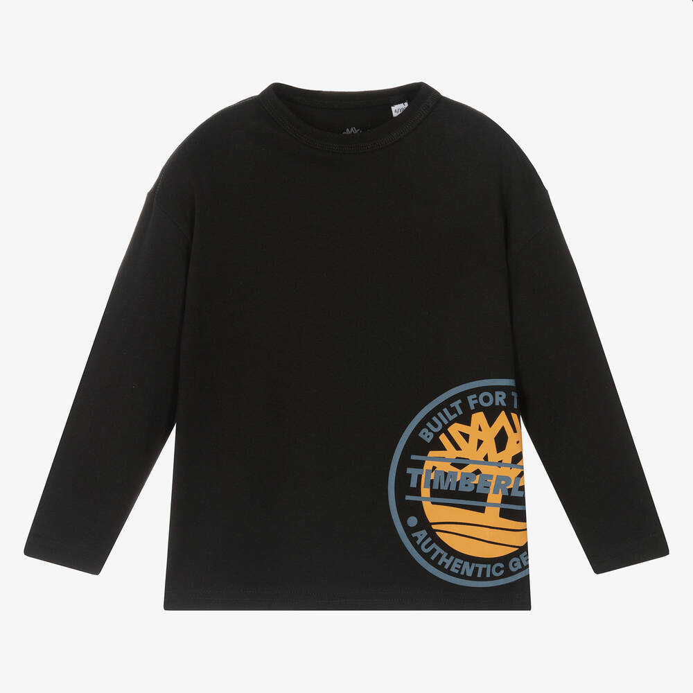 Черный топ для старших мальчиков от Timberland из мягкого органического хлопкового джерси. Легендарный логотип дерева напечатан возле подола с вдохновляющим слоганом.