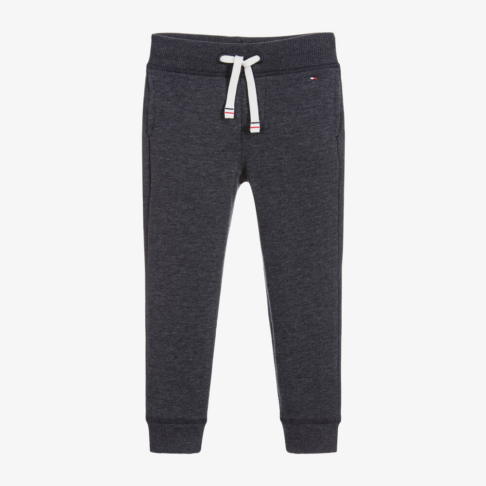 Boys grey-blue marl joggers by Tommy Hilfiger, with a little logo flag on the front and back pocket. They are made in stretchy organic cotton jersey blend with a super soft fleecy lining and have an elasticated drawstring waist.