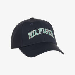 A green cap for boys from Tommy Hilfiger. It is made in soft cotton twill, with a peak to help protect eyes from the sun and an adjustable strap for a great fit. The front is trimmed with white piping and embroidered with the brand's flag logo for instant designer awareness. This item is made with at least 95% organic cotton.