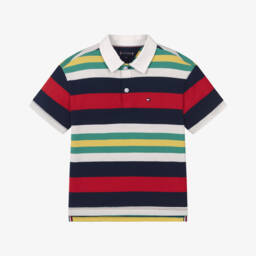 Белая рубашка поло для мальчиков от Tommy Hilfiger, выполненная из комфортного хлопкового пике. Этот повседневный стиль имеет ребристый воротник с синим кантом и аккуратную планку с пуговицами. Логотип бренда вышит на груди в фирменных цветах.