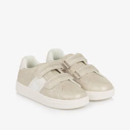 Золотистые кроссовки для девочек от Tommy Hilfiger из мягкой, текстурированной искусственной кожи с блестящим эффектом. Отлично подходят для добавления яркости в любой наряд. Украшены фирменным флагом сбоку и серебристым логотипом на одном из ремешков с застежкой на липучке. Имеют дышащую сетчатую подкладку и стельку, а также нескользящую резиновую подошву для хорошего сцепления.
