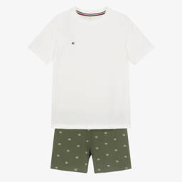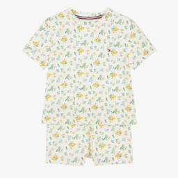 Кремово-красная пижама в клетку для девочек от Tommy Hilfiger из мягкого хлопкового и вискозного трикотажа. Топ с длинными рукавами украшен легендарным логотипом флага бренда на груди, с фирменными деталями на внутренней стороне воротника. Клетчатые брюки имеют эластичный пояс с повторяющимся брендингом для комфорта.