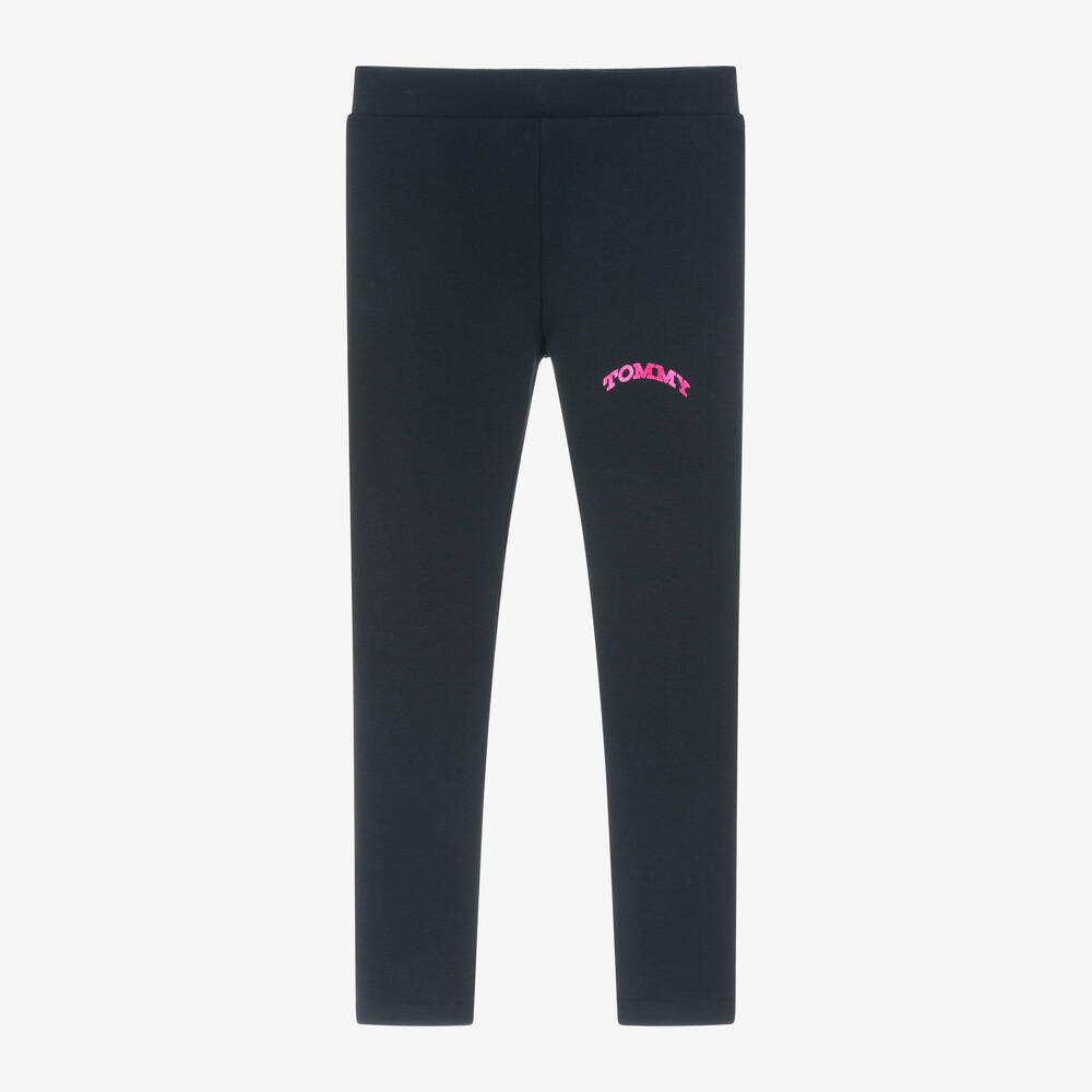Темно-синие длинные легинсы для девочек от Tommy Hilfiger из очень мягкого хлопкового джерси. Повседневные с супер-узкой посадкой, они имеют изогнутый металлический розовый логотип на одной ноге для яркого фирменного акцента. Эластичный пояс обеспечивает комфортную посадку, а сзади вышит легендарный флаг .