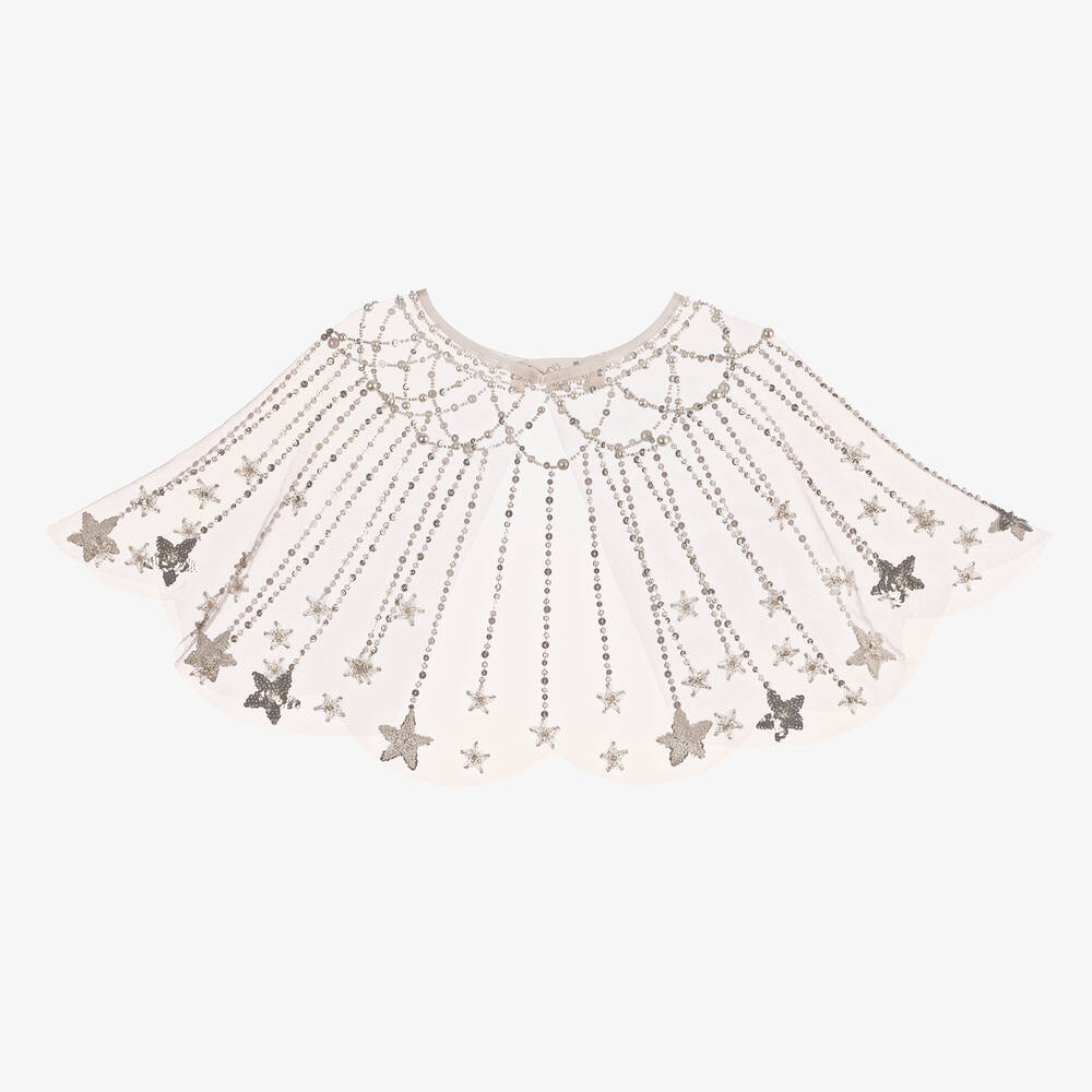 This fabulous pink tulle cape for girls by Tutu Du Monde will add glamour and elegance to any special occasion. It is made in lightweight tulle and beautifully hand-embellished with gorgeous glistening sequins, beads & lustrous pearls. Falling gently over the shoulders, this scalloped cape fastens at the neck with a hook and eye. Items are made to last and become more lovely with wear as slight fading and fraying edges adds to their charm.