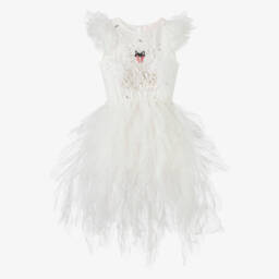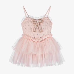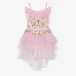 Gorgeous pink Flower Fairy dress for girls by Australian brand Tutu du Monde, ideal for dressing up. The bodice is made in soft cotton jersey. The front is overlaid with a tulle layer, hand-embellished with a beautiful vine and floral motif of sequins, beads and faux pearls. The tri-colour skirt is made in layers of soft tulle, with a feminine handkerchief hem. There are matching tulle ruffles over the shoulders. This stunning dress has a lightweight cotton lining to ensure it hangs perfectly and a single button fastening on the back. Items are made to last and become more lovely with wear as slight fading and fraying edges adds to their charm.