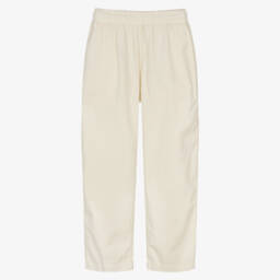 Синие хлопковые брюки от Versace, обеспечивающие комфорт и стиль для девочек. Мягкие и эластичные, имеют расклешенные штанины с логотипом итальянского люксового бренда, украшенным блестящими стразами и заклепками. Эластичный пояс гарантирует удобную посадку, идеально подходит на каждый день.