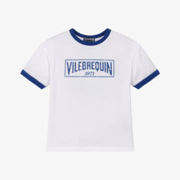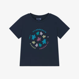 Casual beige T-shirt for boys by Vilebrequin, made in soft organic cotton jersey. Inspired by the brand's vibrant Monoi Turtles print in orange and blue, the front features the designer's signature logo and and their iconic turtle motif.