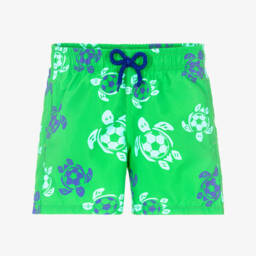 Boys black Mini-me swim shorts by Vilebrequin, with a bold blue turtle print. Made in recycled fabric, these lightweight shorts have an adjustable waistband to ensure ease of movement both in and out of the water. They combine style and practicality with their comfortable mesh lining and handy side pockets. Travel-friendly, they pack away easily into the back zip pocket.