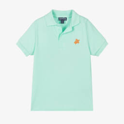 As seen in the adult collection, this blue polo shirt for teen boys is from luxury brand, Vilebrequin. Smart casual, this classic top is embroidered with a signature turtle logo, reflecting the brand's Mediterranean charm. Made from organic cotton piqué, it has aqua blue ribbed trims, with a cool buttonless placket for a laid-back look.