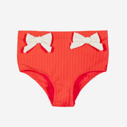 Lovely ivory bikini bottoms for girls by Zimmermann, made in silky, lined lycra. The sophisticated Garden Floral print is patterned in soft, muted colours and they have a stylish ruffle trim on the back.