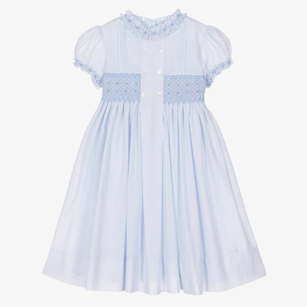 Girls Blue Cotton Hand-Smocked Dress