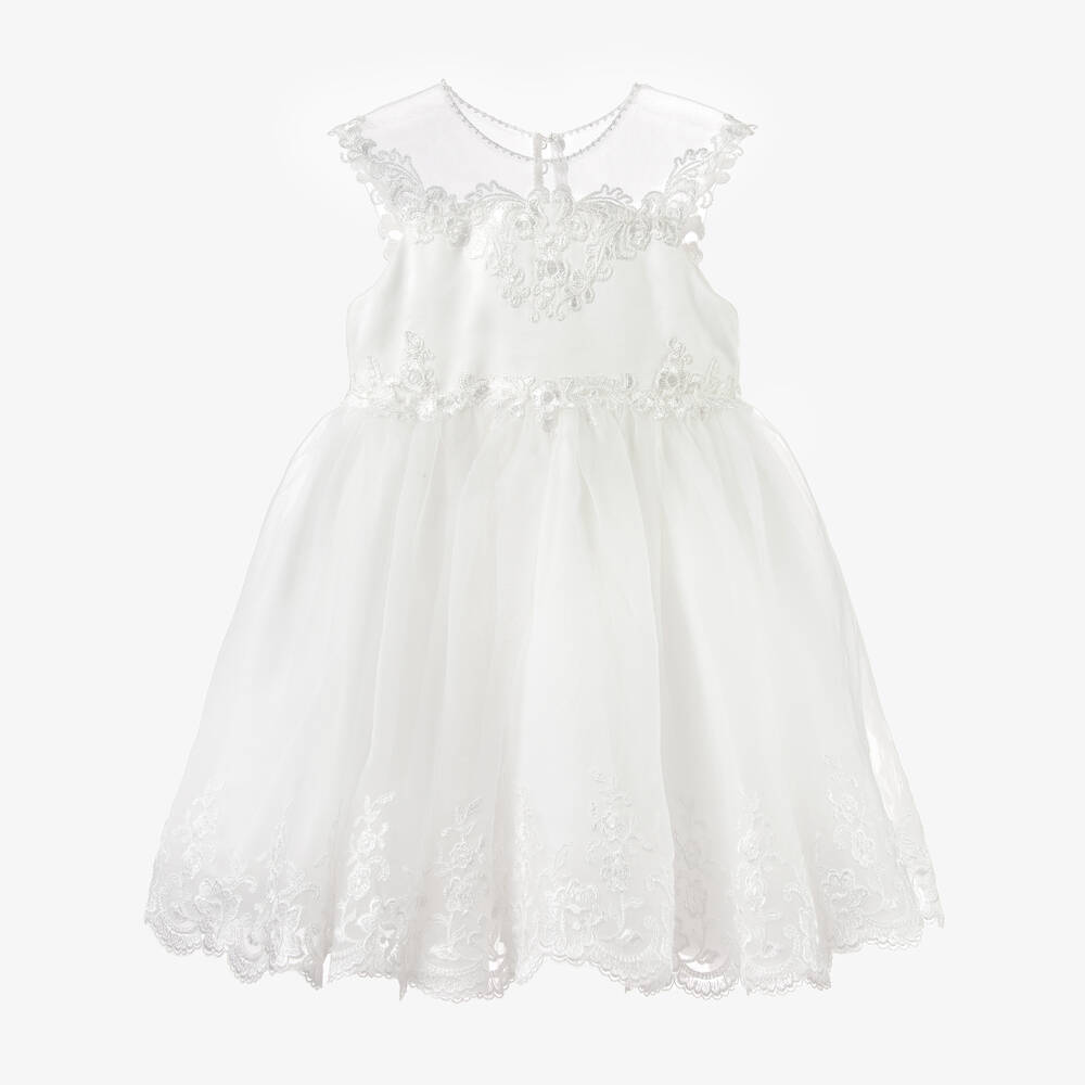 Girls Embroidered Ivory Organza Dress