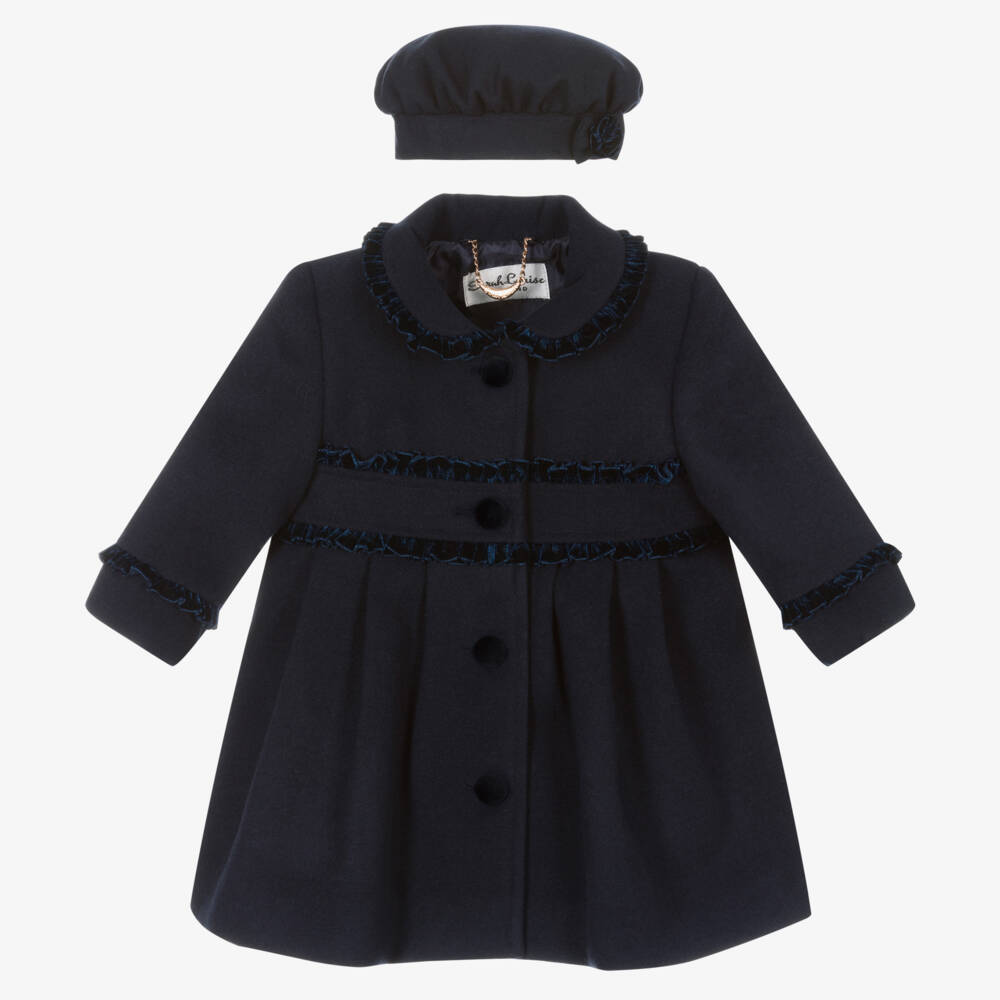 Girls Navy Blue Coat & Hat Set