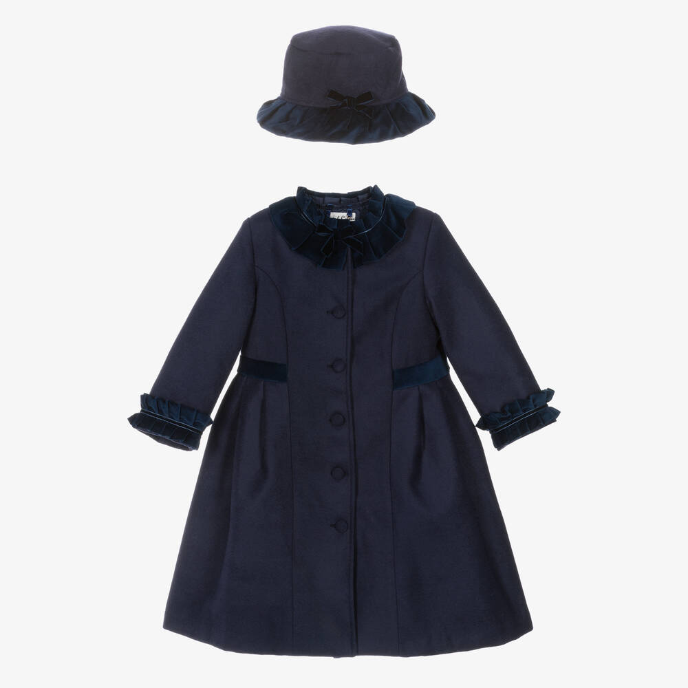 Girls Navy Blue Felted Hat & Coat Set