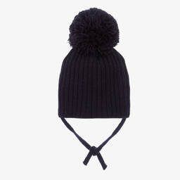Warm and cosy, this navy blue winter hat for boys and girls by Sätila of Sweden is made from a stretchy ribbed knit. Partially lined in knitted cotton for extra comfort, it has a large pom-pom on top for an adorable finish. Smaller sizes have practical ties to fasten under the chin.