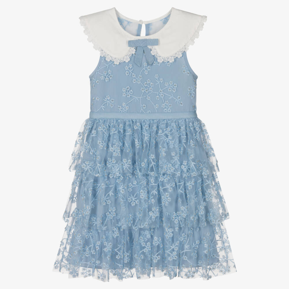 Girls Blue Beaded Tulle Dress