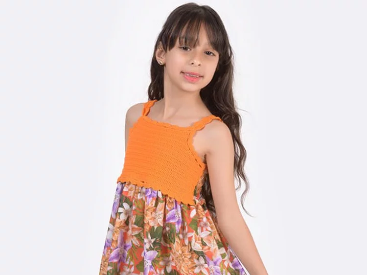 New SeasonSelini ActionGirls Orange Crochet & Floral Print Dress