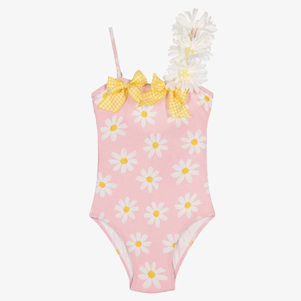 Girls Pink Sparkle Daisies Swimsuit