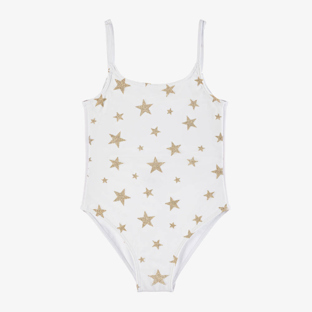 Girls White & Gold Glitter Star Swimsuit