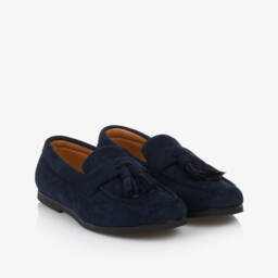 Navy blue faux suede leather loafers for boys by Sevva, ideal for smart occasions. Easy to slip on, this classic style has traditional tassel detailing on the front and a smooth faux leather lining. The insoles are gently padded for comfort, and the rubber outer sole is textured for good grip.