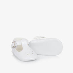 These pale pink pre-walker T-bar shoes by Sevva are a charming choice for baby girls. Made in faux patent leather for a glossy finish, they have delicate cut-out detailing on the toes and an adjustable buckle-fastening strap. Comfortable and promoting natural movement, both the insole and outsole are made in smooth faux leather.