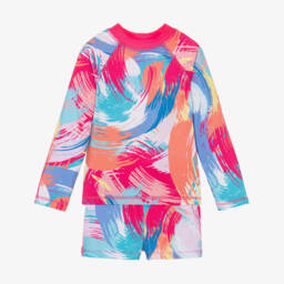 Girls Pink Floral Print Swim Set (UPF 50+)