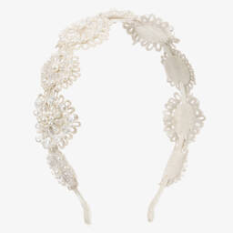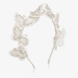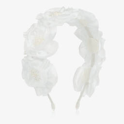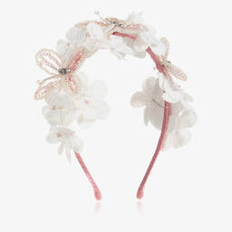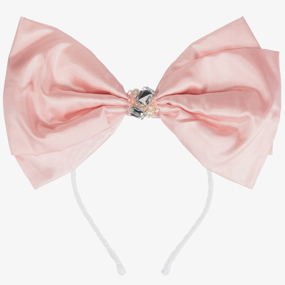 A luxury pink taffeta bow hairband for girls from Sienna Likes To Party. Lovely to complete an outfit, it is handmade with a white velvet ribbon-wrapped band, and sparkly pearl, crystal bead and diamanté details.