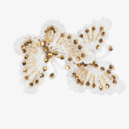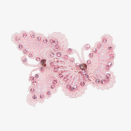 Beaded butterfly hair clip for girls by Sienna likes to party. Made in pink macramé, with pink crystal beads, this pretty hair accessory has two butterflies and secures to the head with a fabric covered metal crocodile clip.