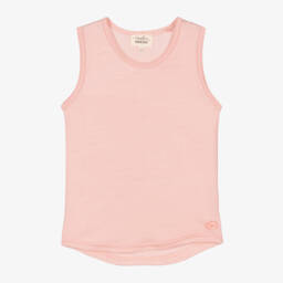 Green vest top for boys and girls by Smalls Merino. Beautifully soft and lightweight, this technical design is finely knitted in sustainable ZQ Merino wool, helping to regulate body temperature and wick moisture away from the skin. Naturally antibacterial and gentle against sensitive skin, this versatile piece can also be worn as a thermal base layer. The sleeveless style is longer in the body with a curved hem for comfort and movement.
