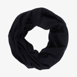 Dark navy blue snood for boys and girls by London-based brand Smalls Merino. Finely knitted in sustainable ZQ Merino wool, this protective accessory is highly breathable, moisture-wicking and suitable for all-year wear. The certified, hypoallergenic fabric is soft and lightweight and ideal for those with skin sensitivities. Easy to wear and extremely versatile, it can be worn as a scarf, headband, hat or face covering.