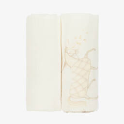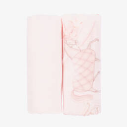 Exclusive to Childrensalon, a pack of two pink muslin cloths for baby girls by Sofija, made in soft, lightweight cotton. One is plain pink and the other has a gorgeous fairytale castle and carriage design on the front. These useful, absorbent cloths are great for cleaning up little spills or can be used as a burping cloth or nursing cover.