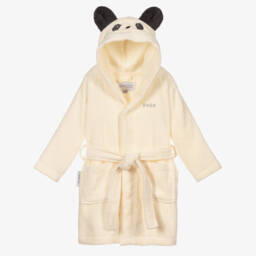 Light pink bathrobe for younger girls from Sofija, a design exclusive to Childrensalon. Cosy and comfortable, it is made from cotton towelling and designed with a fleece-feel underside to keep little ones warm. With beautiful fabric roses and leaf embroidery, this tie-up robe has a hood with tassel details and easy-fastening poppers on the front. Front patch pockets complete the look.