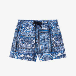 Boys Blue Palm Tree Print Swim Shorts (UPF50+)