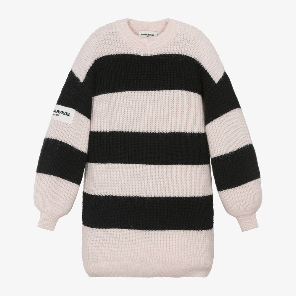 Inspired by the adult collection, this stylish pink and black striped dress for girls is by French brand Sonia Rykiel. Casual and comfortable, it is knitted in a soft wool blend, with long sleeves and cosy ribbed trims.
