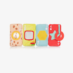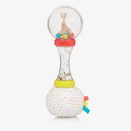 This cute wooden ring activity toy for baby boys and girls by Sophie la Girafe, is ideal for stimulating all of baby's senses. Your little one will have hours of fun exploring all the different textures and sounds, including a rattle, bell, crackling leaves and flexible teething ring.