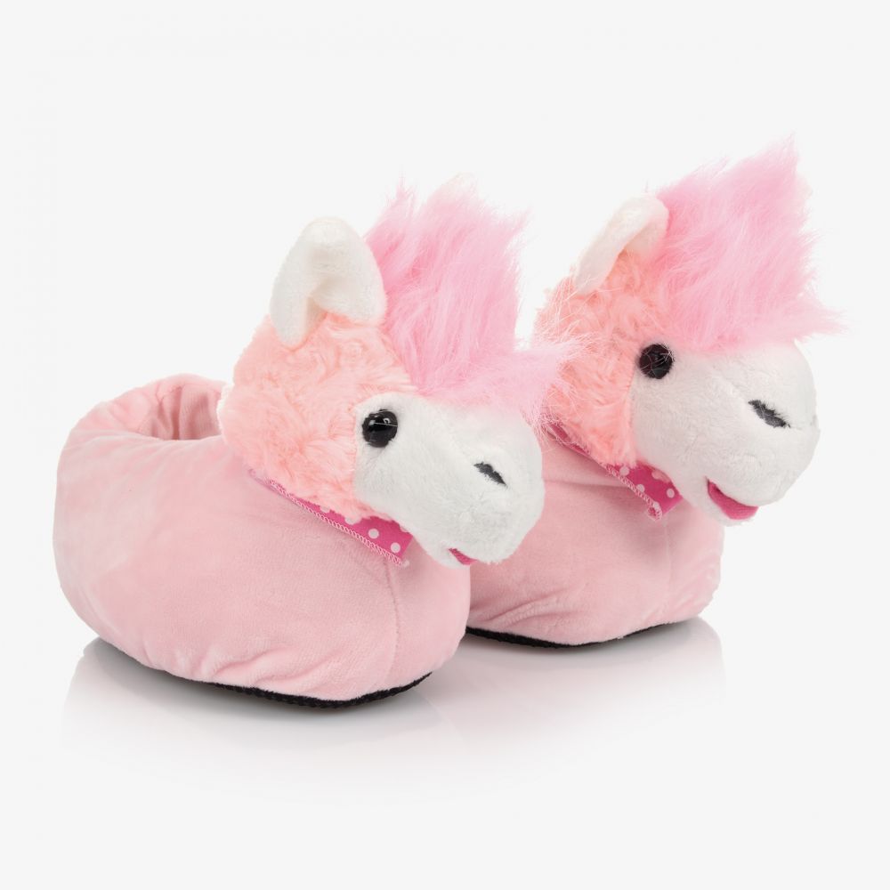 Adorable tonal pink llama by Souza, made in soft and cosy plush polyester. Cuddly and padded, these velour-lined slippers have a flexible black sole with rubberised dots providing extra grip.