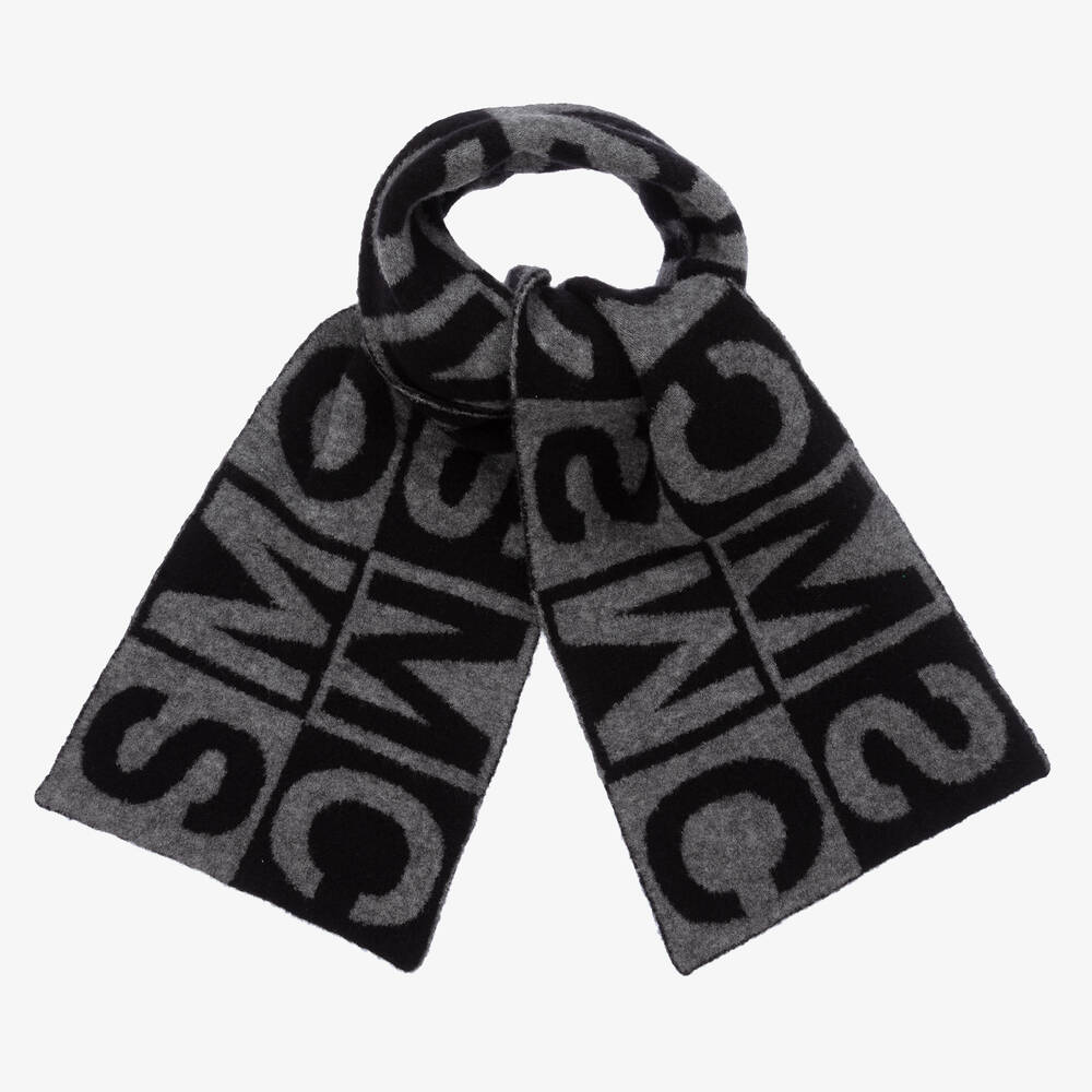 Black and grey scarf for boys by Stella McCartney Kids, knitted in a soft recycled yarn. Cosy and warm, it is patterned with contrasting SMC logo letters for instant designer appeal.