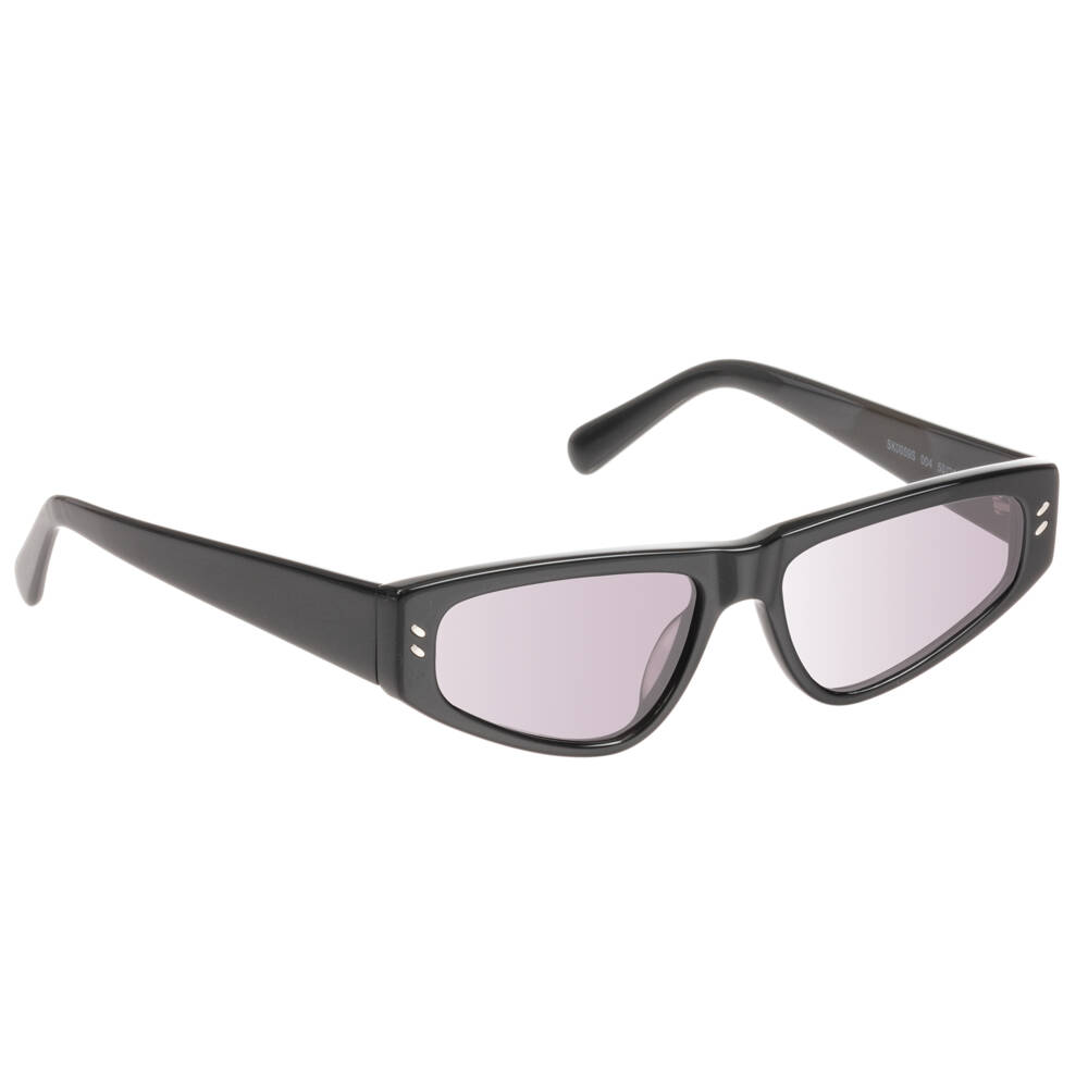 A pair of black sunglasses for boys by Stella McCartney Kids. They have grey tinted lenses, with category 3 filter against the sun glare. They come with a neoprene case for safe storage.