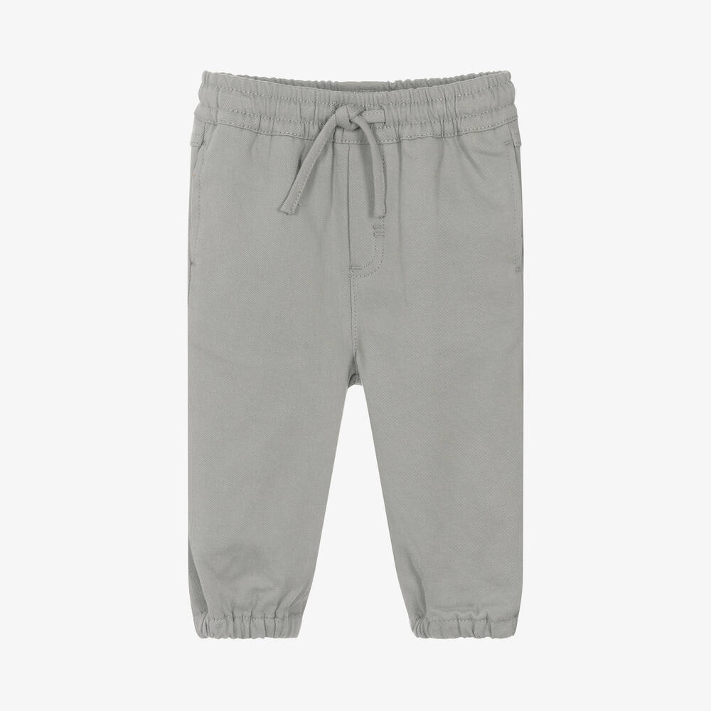 Cute grey organic cotton trousers for little boys by Stella McCartney Kids, featuring playful horse motifs on the back pockets. They have a stretchy drawstring waist for comfort. The Stella McCartney fit can be quite small so choose a size up if you want room to grow.