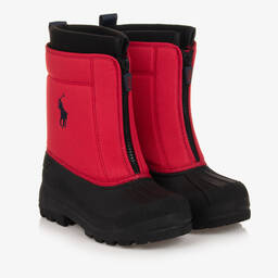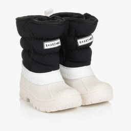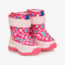 Black snow boots for girls by Stella McCartney Kids, patterned in a fun and colourful star print. Adding a designer touch, the brand's name is embroidered on the back in multicolour letters. The upper is made from quick-drying recycled polyester, with a fluorocarbon-free coating and a water repellent and breathable lining to stop snow and water entering the boot. The bright red non-slip rubber soles have a deep tread for improved grip on slippery surfaces. For a comfortable fit, the boots can be adjusted with the toggle drawstring around the top.