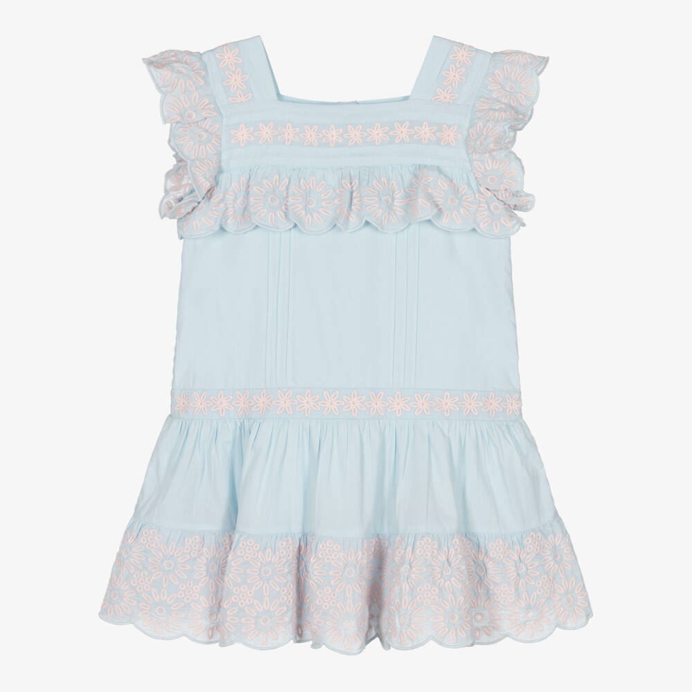 Girls Blue Organic Cotton Embroidered Dress