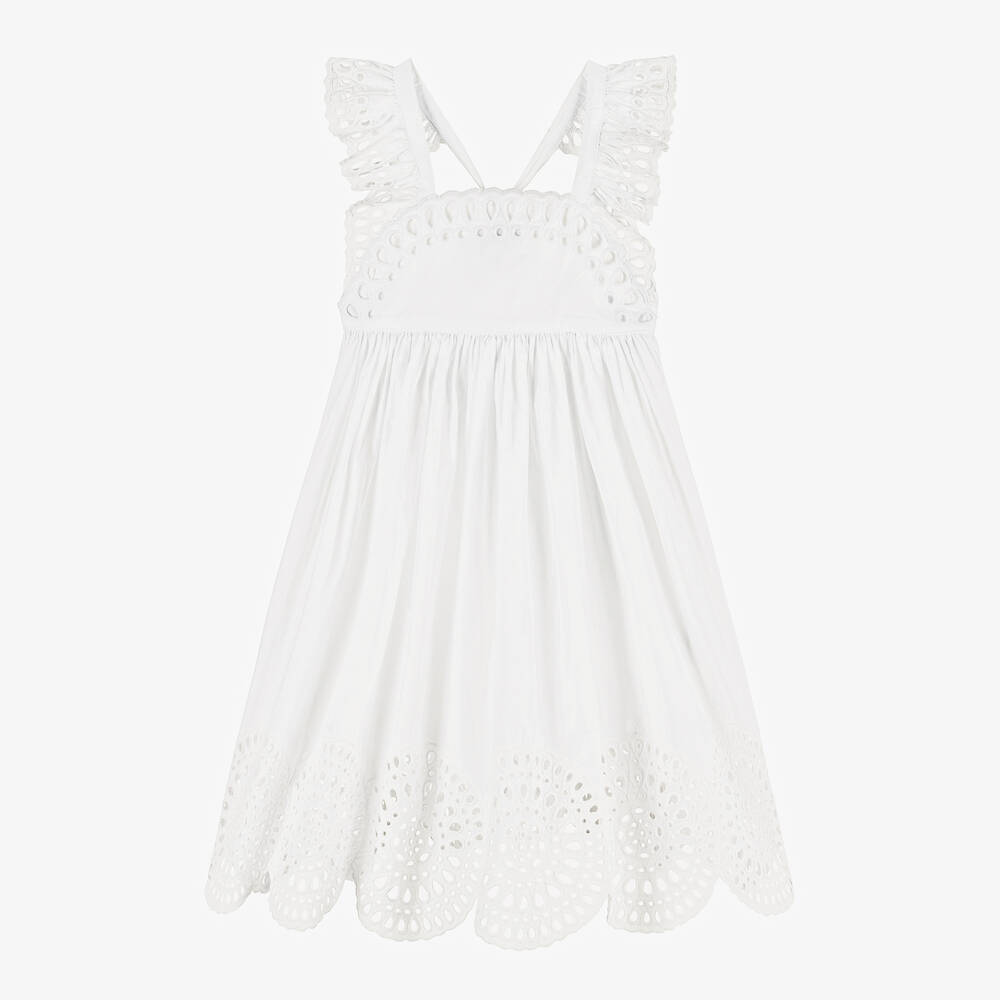 Girls Ivory Broderie Anglaise Dress