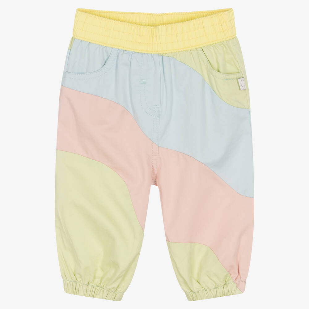 In pretty pastel shades, these jogger-style trousers for little girls are by Stella McCartney Kids. Made in organic cotton poplin, they have three pockets and are gently elasticated around the waist and ankles for a comfortable fit. A small branded label is sewn on one side for a subtle designer touch. The Stella McCartney fit can be quite small so choose a size up if you want room to grow.