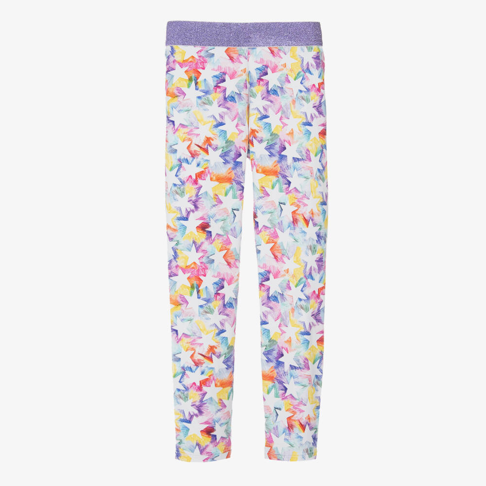 Girls Purple Rainbow Star Leggings