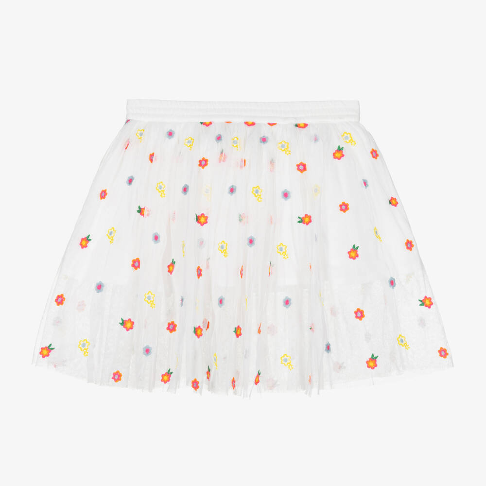 Girls White Embroidered Tulle Skirt